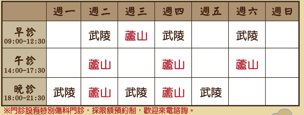 兒科特別門診、皮膚科特別門診、慢性病暨久病特別門診、傷科整復骨折特別門診、骨折活動式固定、自費水煎藥、二代美妍針、自費減重