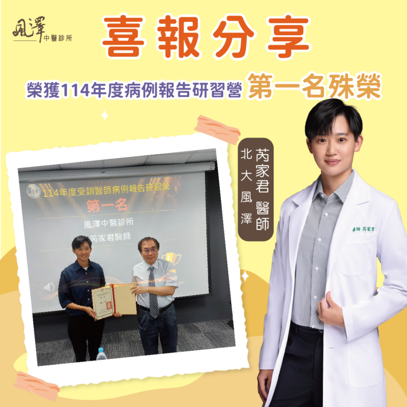 恭賀芮家君醫師榮獲114年度病例報告研習營第一名 - 風澤中醫