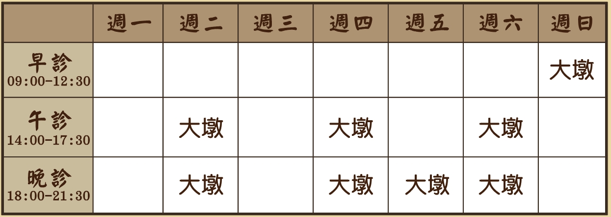 月經不規則、痛經、經前症候群、崩漏、白帶、更年期症候群、不孕症、懷孕調理、安胎、月子調理、產後落髮、乳腺炎、子宮肌瘤、子宮內膜異位症、多囊性卵巢、泌尿道感染